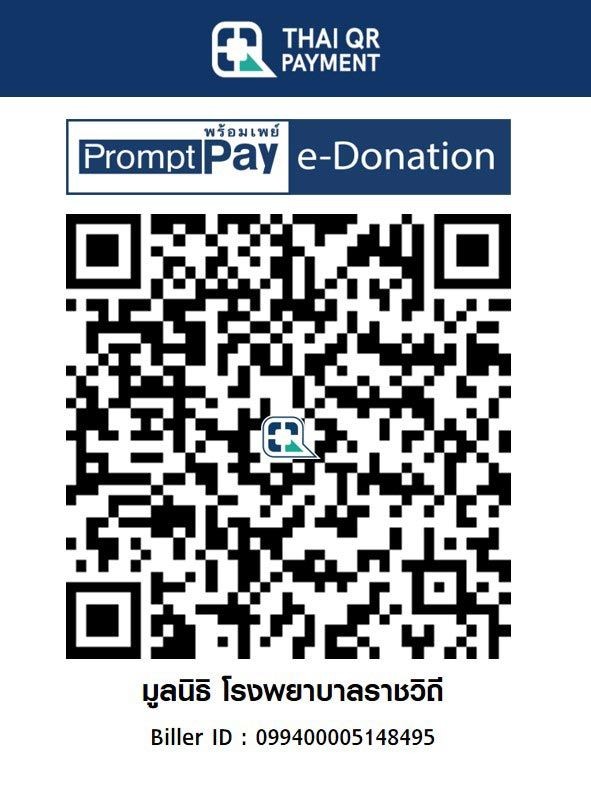 - บริจาค ณ จุดรับบริจาคมูลนิธิโรงพยาบาลราชวิถี ชั้น 1 ตึกสิรินธร โรงพยาบาลราชวิถี